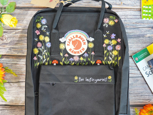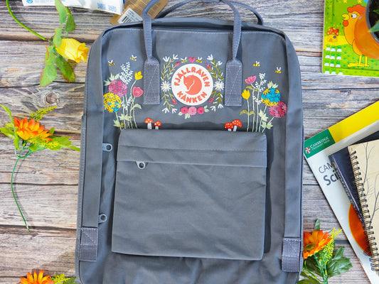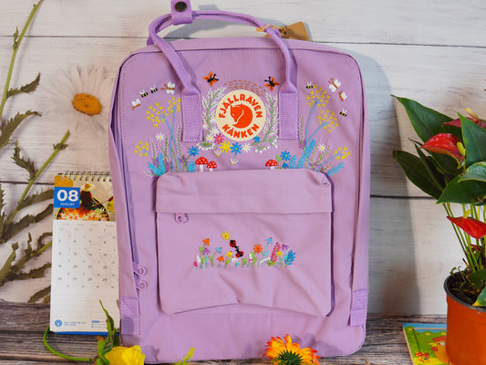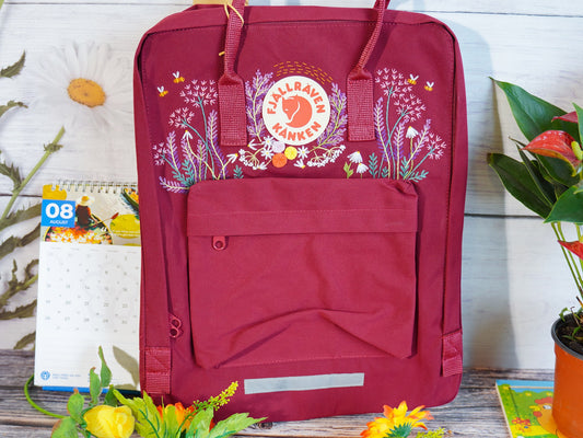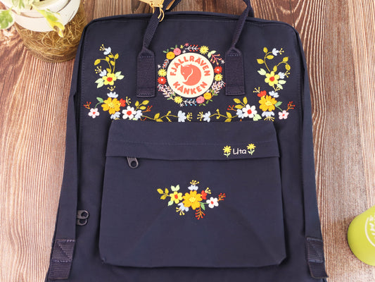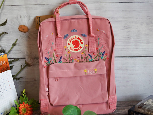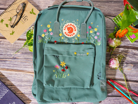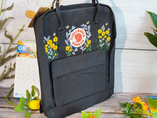 Fjallraven Kanken Backpack with Embroidered Wildflower - Personalized Embroidered Backpack - Custom Bag for Women