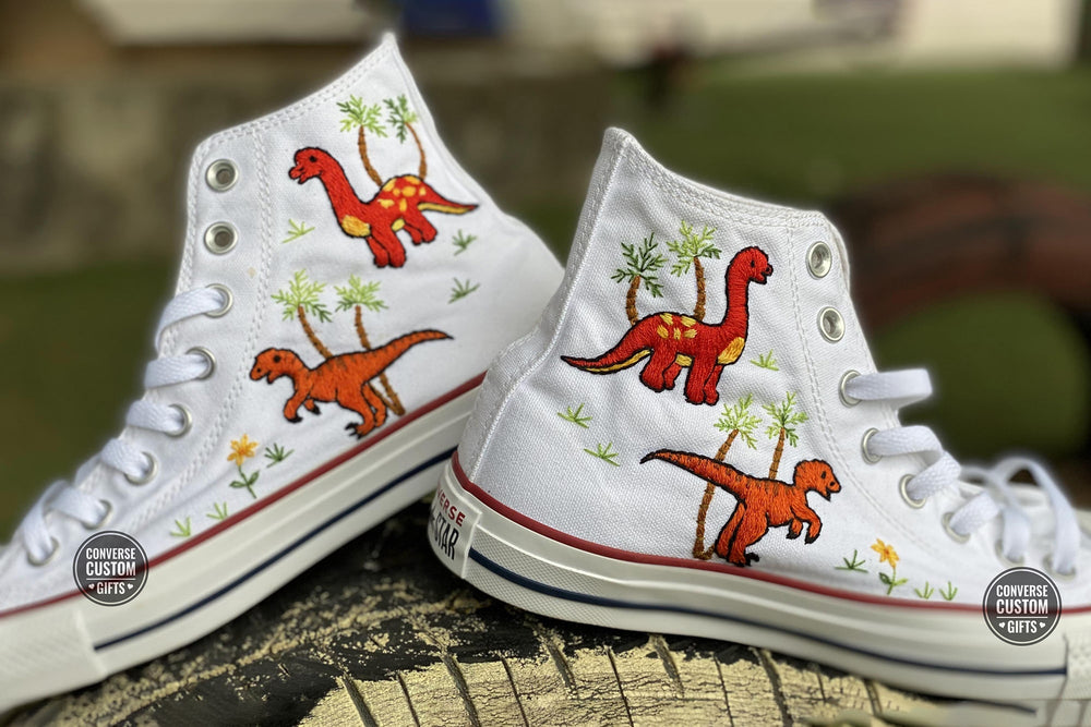 Dinosaur - Personalized Embroidered High Top Shoes - Custom High Top Shoes for Women