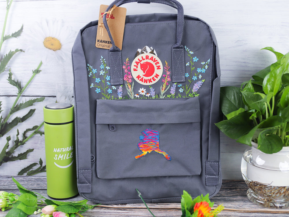 Fjallraven Kanken Backpack with Embroidered Alaska Flower - Personalized Embroidered Backpack - Custom Bag for Women
