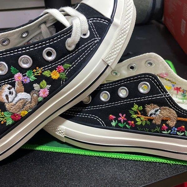 Let me begin by saying if you ever need anything custom made, this is your shop! I requested a pair of low-top Converse Shoes to be embroidered with sloths and flowers. She is so easy and kind to work with, and her work is exceptional! You can see she takes great pride in what she creates and wants you to be happy