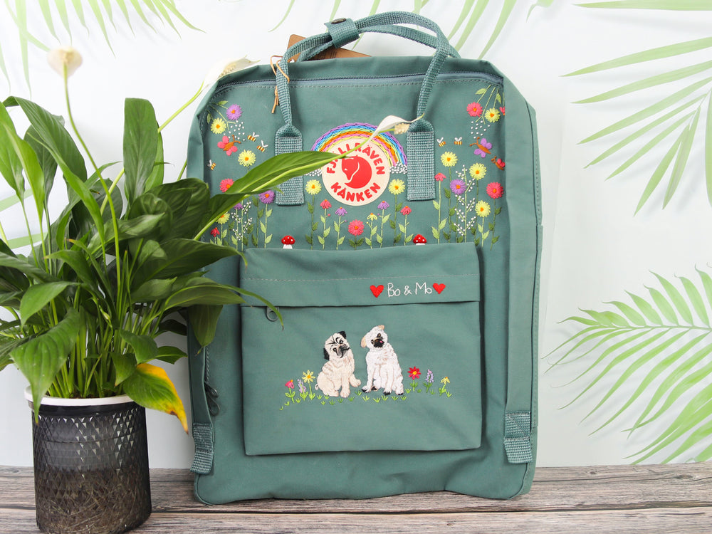 Fjallraven Kanken Backpack with Embroidered Dogs - Personalized Embroidered Backpack - Custom Bag for Women