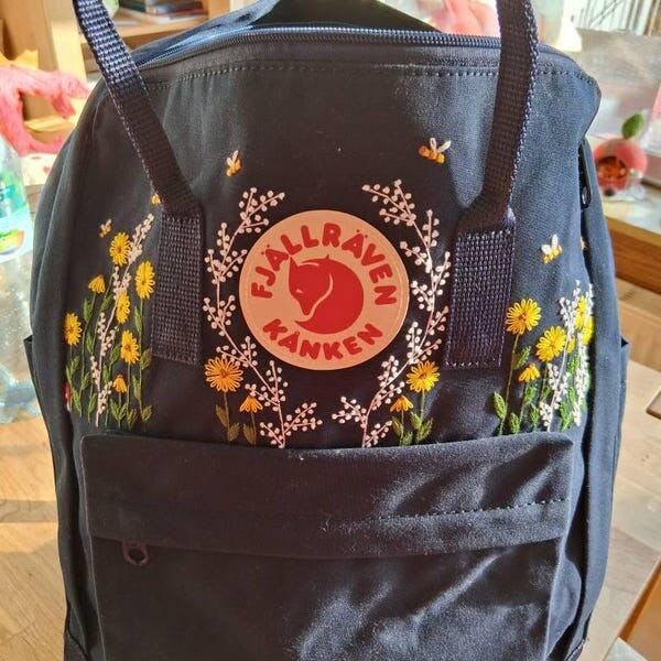 Fjallraven Kanken Backpack with Embroidered Flowers - Personalized Embroidered Backpack - Custom Bag for Women