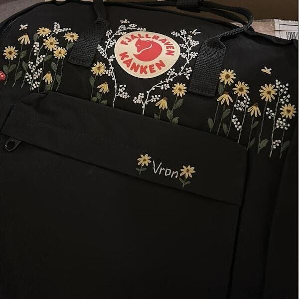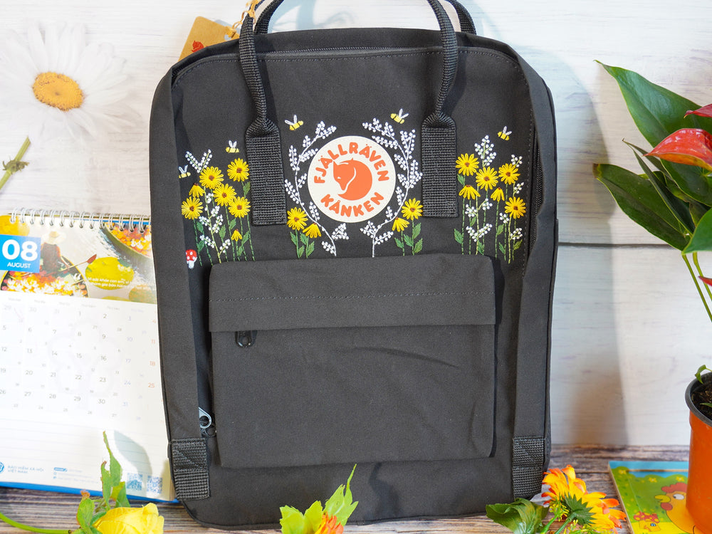 Fjallraven Kanken Backpack with Embroidered Yellow Daisy - Personalized Embroidered Backpack - Custom Bag for Women