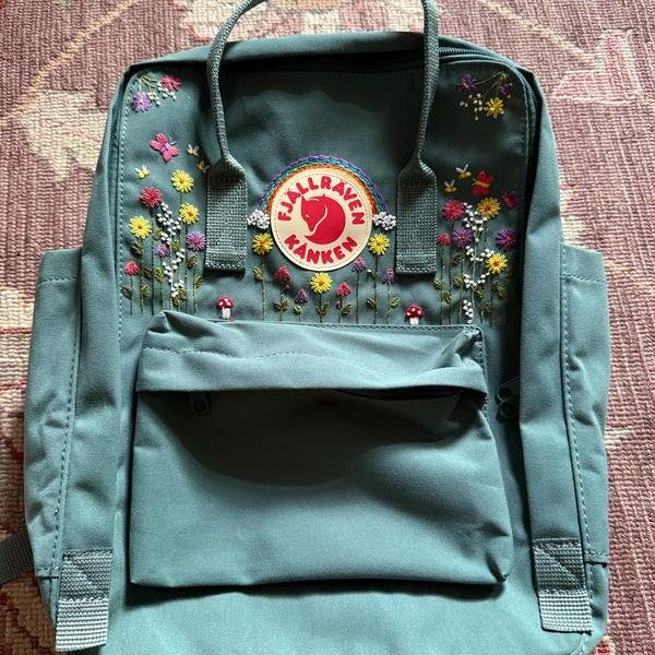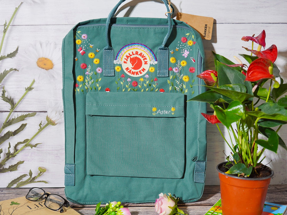Fjallraven Kanken Backpack with Embroidered Flowers and Rainbow - Personalized Embroidered Backpack - Custom Bag for Women