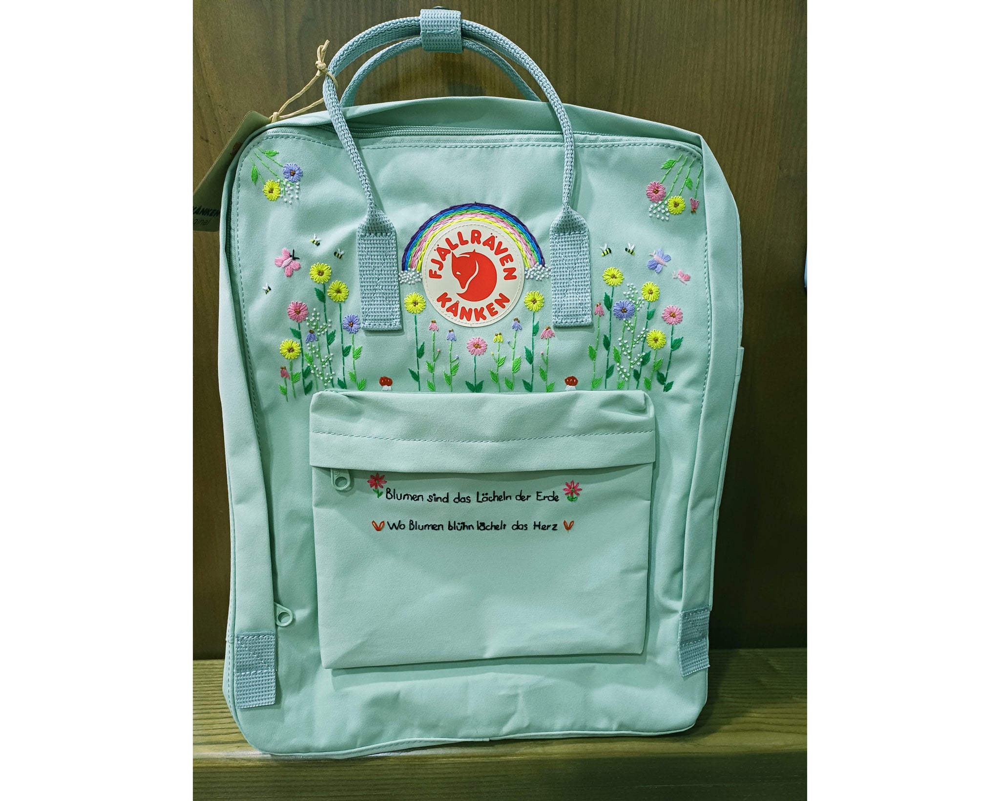 Fjallraven Kanken Backpack with Colorful Sunflower, Rainbow and Quote Embroidery - Personalized Embroidered Backpack - Custom Bag for Women