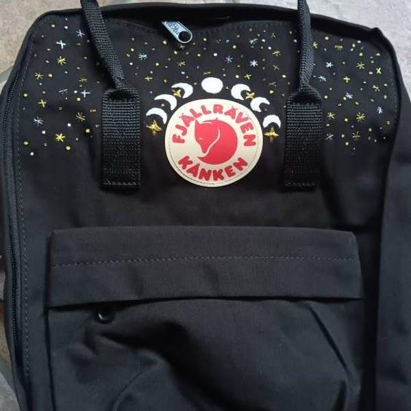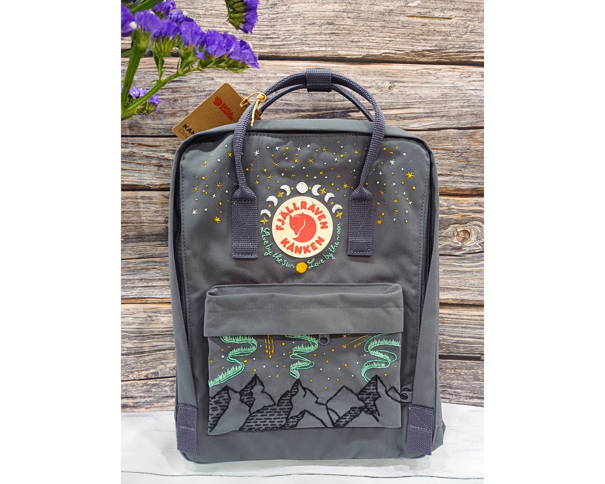 Fjallraven Kanken Backpack with Moon Phases, Stars & Aurora Embroidery - Personalized Embroidered Backpack - Custom Bag for Women