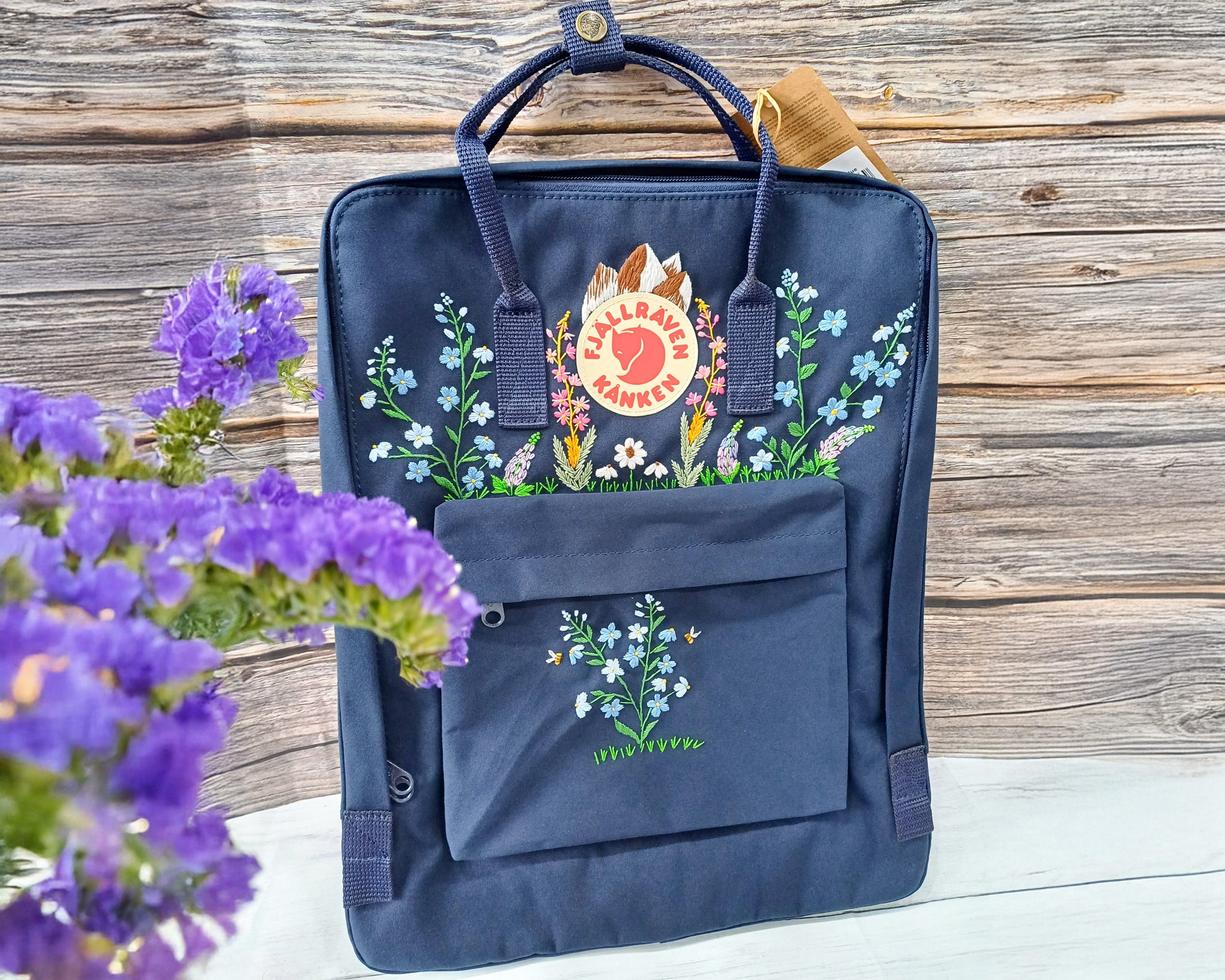 Custom Kanken Backpack – Alaska Wildflowers Design - Personalized Embroidered Backpack - Custom Bag for Women