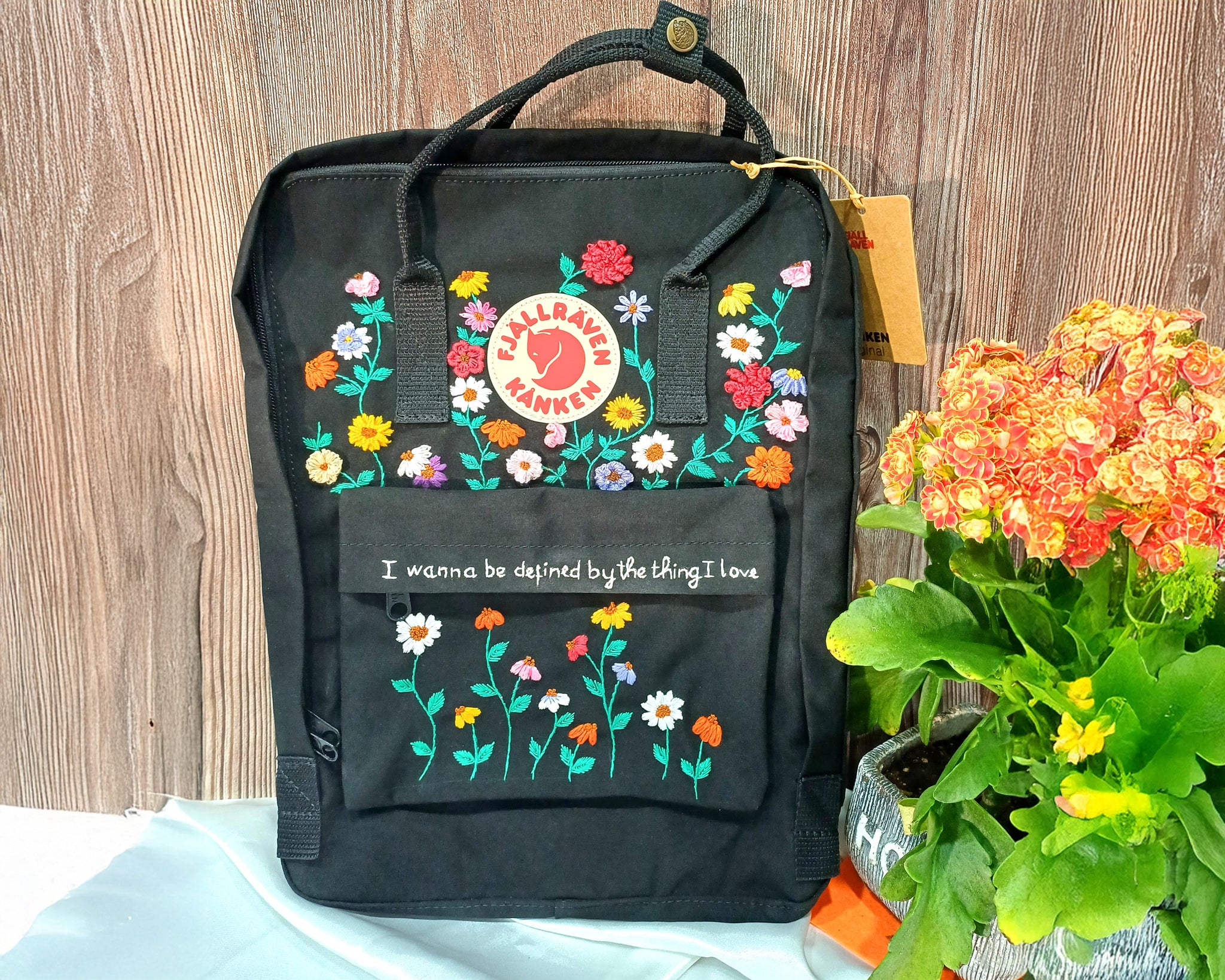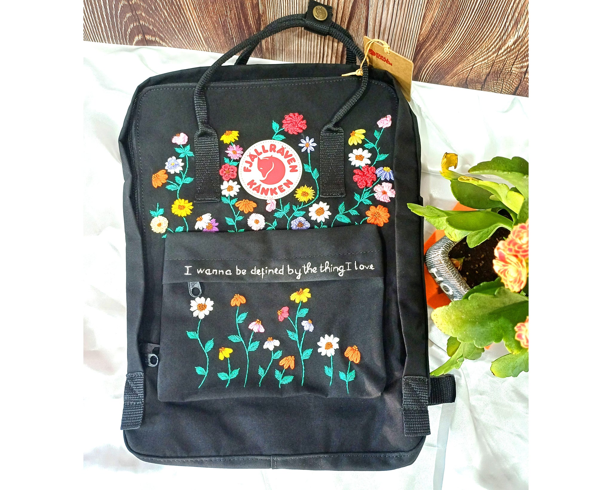 Embroidered Fjallraven Kanken – 3D Flower Garden Design - Personalized Embroidered Backpack - Custom Bag for Women